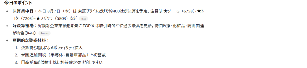 本日2025年8月7日(木)は402社が決算発表を実施しました。